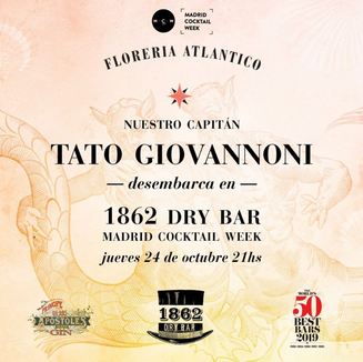 El pasado 24 de octubre coincidiendo con el COCKTAIL WEEK de Madrid tuvimos la visita de Tato Giovannoni desde su FLORERIA ATLANTICO de Buenos Aires presentando en el 1862 DRY BAR de Madrid un menú homenaje de la coctelería clásica argentina y a los tragos mágicos del gran "Pichón" Policastro.